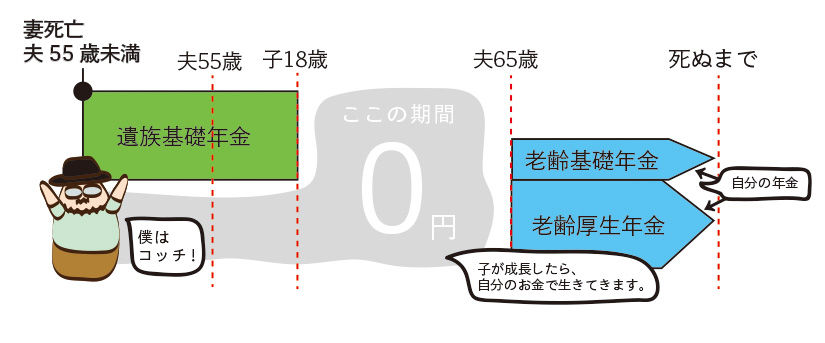 夫が55歳の時に妻が死んだら3年間需給できることになりますね。