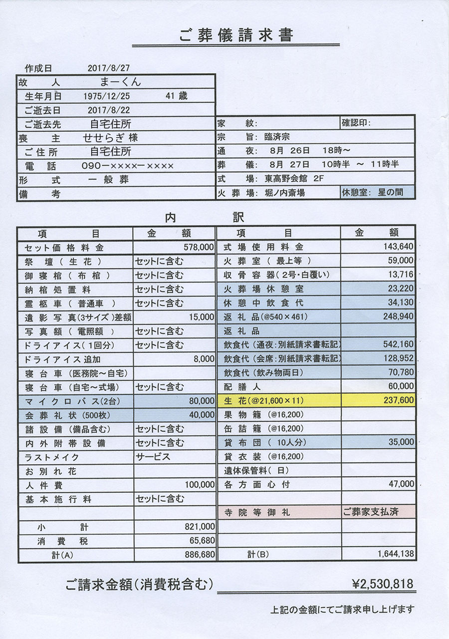 葬儀社に払った2,530,818円